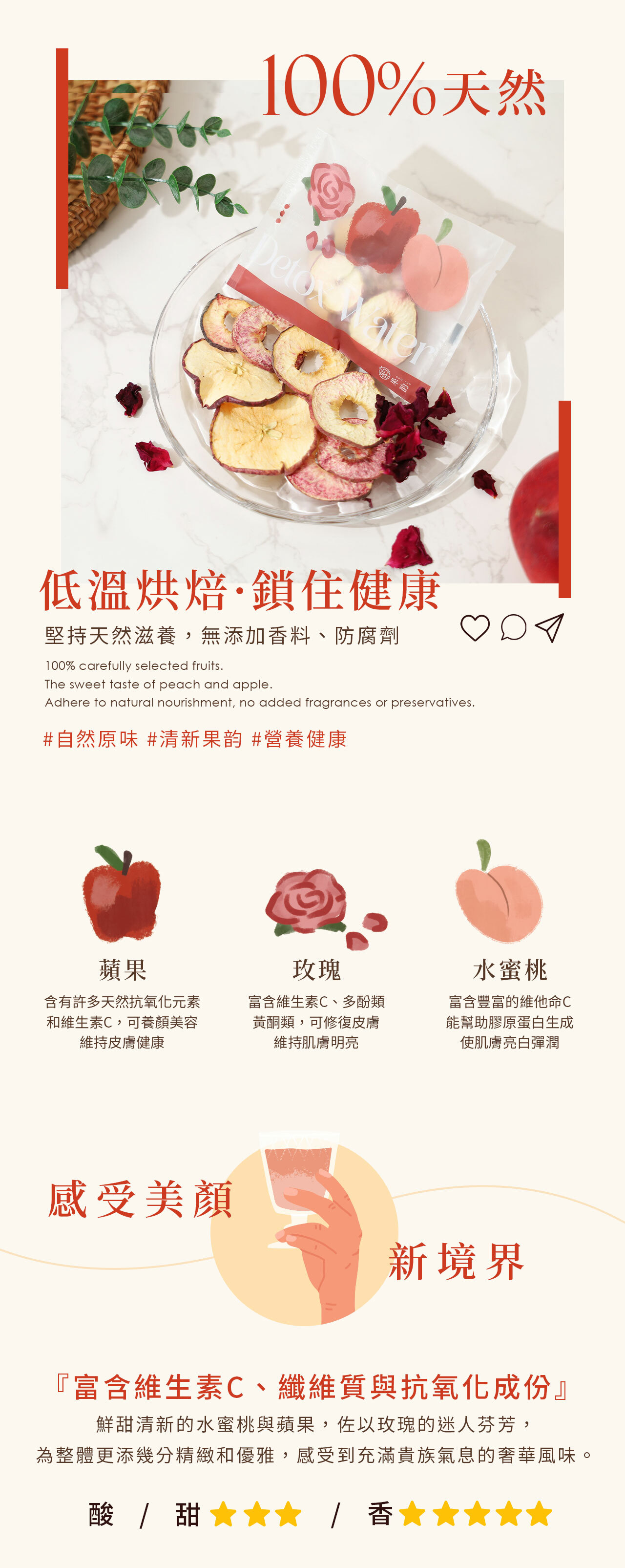 蜜桃&蘋果的香甜,佐上天然玫瑰花瓣